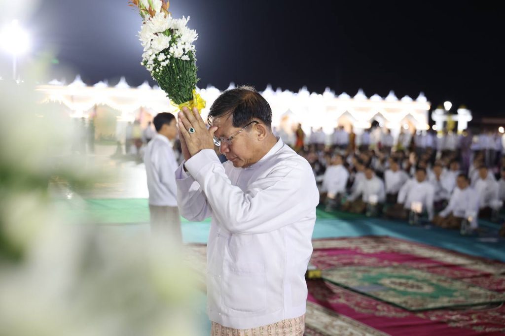 မာရဝိဇယဗုဒ္ဓရုပ်ပွားတော်မြတ်ကြီးအား ၂၀၂၅ ခုနှစ်၊ တန်ဆောင်တိုင်ပွဲတော် မသိုးရွှေကြာသင်္ကန်း ဆက်ကပ်လှူဒါန်းခြင်း မဟာမင်္ဂလာ အခမ်းအနားကို ယမန်နေ့ နံနက် မင်္ဂလာအချိန်တွင် ကျင်းပပြုလုပ်ရာ မြန်မာနိုင်ငံတော် ယာယီသမ္မတ နိုင်ငံတော်လုံခြုံရေးနှင့် အေးချမ်းသာယာရေးကော်မရှင် ဥက္ကဋ္ဌ ဗိုလ်ချုပ်မှူးကြီးမင်းအောင်လှိုင် တက်ရောက်၍ မသိုးရွှေကြာသင်္ကန်း ဆက်ကပ်လှူဒါန်းသည်။